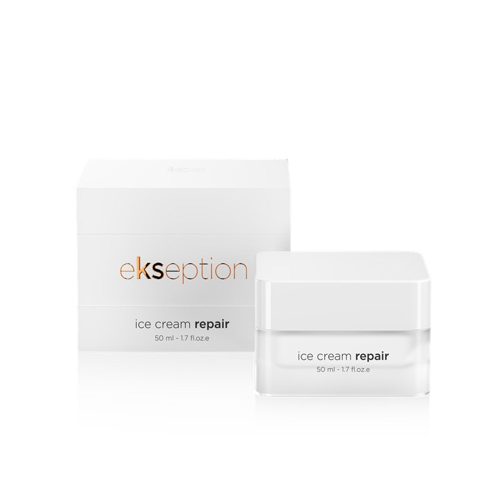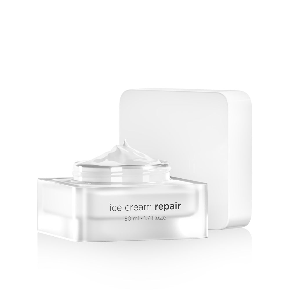 This ice cream repair is formulated to maintain an optimal skin pH, simultaneously repair and regenerate the skin. It has a water-in-oil formula that is ultra rich, with an ice cream texture will suit in particular dry and mature skin types. Ice cream repair combines important amount of essential nutrients and growth factors to boost the cellular activity and retinol to stimulate the skin renewal process. It leaves a rich film on the skin.
